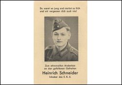 Gefallener 2. Weltkrieg; Eltern: Arno Schneider u. Maria geb. Versen; Jan. 1943 Einberufung |