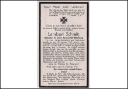Gefallener 2. Weltkrieg; 22 J.; am 19.1.1943 schwer verwundet; Bruder Paul bereits am 30.6.1941 an der Ostfront gefallen; Heldenfriedhof Stalino; Wohnort Altenahr |