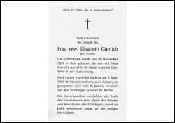 86 J.; ∞ Peter Gierlich, † Dez. 1944 in der Evakuierung |
