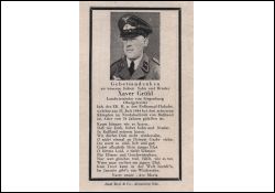 Gefallener 2. Weltkrieg; 34 J.; Landwirtssohn aus Siegenburg; Druck in Abensberg, Niederbayern |