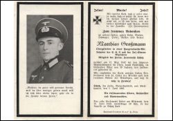 Gefallener 2. Weltkrieg; 29 J.; Mitgl. Der Freuwl Feuerwehr in Schutz; Wohnort: Schutz; Druck in Trier |