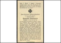 Gefallener 2. Weltkrieg; Jungbauer; Bruder Wilhelm in Holland gefallen; 13.6.1940 zu den Fahnen gerufen; 3 Geschwister gingen ihm innerhalb von 14 Monaten im Tod voraus; Druck in Bocholt |