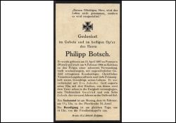 Gefallener 2. Weltkrieg; wochenlanges Krankenlager nach schwerer Verwundung; ∞ Eva Jakobs; 3 K., davon 2 †: Töchterchen Gertrud u. Sohn Jakob, vor 2 J. an der Ostfront gefallen; Druck in Koblenz |