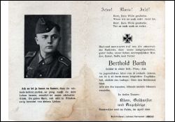 Gefallener 2. Weltkrieg; 18 1/2 J.; Unglücksfall; Wohnort: Nonnweiler; Druck in Hermeskeil |