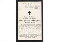∞ 28.5.1887 Joseph Hannegress; 2 K., davon der Sohn im 1. Weltkrieg gefallen |