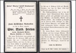 ∞ 1.10.1900 Gerhard Birker, † 1904; 2 K.; ∞ 2.2.1912 Matthias Drießen, † 19.6.1918 im 1. Weltkrieg gefallen; langes, schweres Leiden |