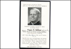 75 J.; frei resignierter Pfarrer von Grainet u. Bayerbach/Rott; zuletzt Kommorant in Altötting (Wohnort); Druck in Altötting |