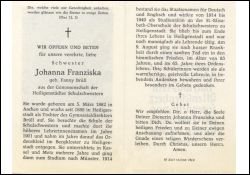 Johanna Franziska, Sr., geb. Brüll | Vorname: |