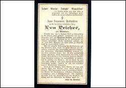 ∞ 24.11.1877 Aegidius Pescher; langwierige, schmerzhafte Abnehmungskrankheit; sie war den Kindern ihres Mannes aus 1. Ehe u. den eigenen Kindern eine gute Mutter; 6 überlebende unmündige Kinder; Druck in Neuss |