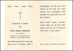 ∞ 28.4.1913 Josef Spicker aus Holtbüttgen; 5 K.; Mitgl. Frauengemeinschaft u. St. Matthias-Bruderschaft |