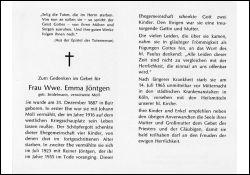 ∞ Johann Moll, 1916 im 1. Weltkrieg gefallen; 4 K., davon 3 †; ∞ Juli 1923 Reiner Jöntgen, † 1955; 2 K.längere Krankheit; Wohnort: Buir; dort auch beerdigt |