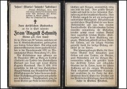 Qualvolles Leiden u. schwere Operation; Eltern: Gutsbesitzer Gerhard van Laar u. Eugenie geb. Roerbrock; ∞ 27.10.1914 Gutsbesitzer August Schmitz aus Binsfeld b. Düren; 3 K. |
