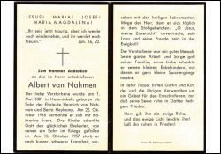 Eltern: Heinrich van Nahmen und Berta geb. Heykamp; ∞ 22.10.1918 Katharina Everz; 3 K., davon 1 Sohn im 2. Weltkrieg gefallen; Druck in Xanten |