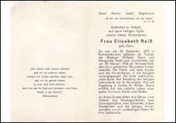 Eltern: Wilhelm Gans u. Margarete geb. Pesch; ∞ 18.2.1905 Winand Reiß, †; 7 K., davon 2 † |