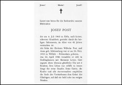 45 J.; Eltern: Wilhelm Post u. Anna geb. Schönenberg; ∞ 22.4.1946 in Siedlinghausen Marianne Leisse (Leiße); 3 K. |