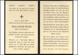 Langes, schweres Leiden; ∞ 17.5.1930 Jean Peters; 1 Tochter |