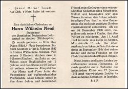 Studienrat der Staatl. Techn Lehranstalt zu Aachen (Blücherplatz); ∞ 9.2.1892 in Aachen Wilhelmine Fraiqui, † 16.12.1936n; 9 K., davon 2 früh †; 1 Sohn starb mit 16 J. nach Unglücksfall, 1 Sohn mit 31 J. an seinem schweren Kriegsleiden; am 11.4.1944 brannte sein Haus in Aachen ab; |