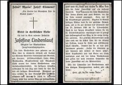 Fräulein: Mitgl. Jungfrauenkongregation; Eltern: Gottfried Lindenlauf u. Gertrud geb. Stapper; Druck in Süchteln |