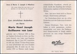 Eltern: Gerard van Laar u. Eugénie geb. Roebroeck; ∞ 16.6.1937 Marie Yvonne Boeynaems; 2 K.; lange, schmerzhafte Krankheit; Druck in Raeren |