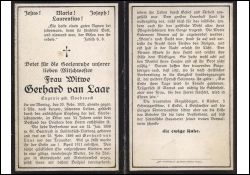 ∞ 20.2.1889 Gerhard van Laar, † 1.4.1911; 4 überlebende Kinder; Dsruck in Aachen |