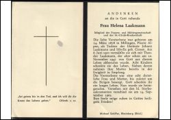 Mitgl. Frauen- u. Müttergemeinschaft sowie St.-Ulrich-Bruderschaft; Eltern: Johann Laakmann u. Sibylla geb. Giesen; ∞ 8.6.1901 Theodor Laakmann, † 10.11.1947; 8 K., davon 7 †; Druck in Rheinberg, Rhld. |