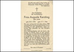 ∞ Gymnasialprofessor Franz Kersting, † 1909; 4 K., davon älteste Tochter †; Druck in Lippstadt |