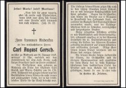 Eltern: Carl Gorsch u. Maria geb. Schäfer; ein bruder vor 6 Mon. Im 1. Weltkrieg in Frankreich gefallen; |
