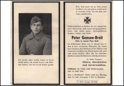 Gefallener 2. Weltkrieg; 21 J.; Wohnort: Pohlbach, Pfarre Klausen; Druck in Wittlich |