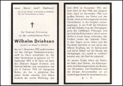 Landwirt auf Böxhof in Grefrath; Eltern: August Driehsen (Drießen) u. Gertrud geb. Mörtter; ∞ 4.2.1914 Margarete Bolten; 7 K.; 3 Söhne im 2. Weltkrieg gefallen: Willi Nov. 1941, Karl Mai 1943, Josef Nov. 1943; auch 1^Schwiegersohn †; |