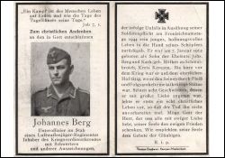 Gefallener 2. Weltkrieg; Tod bei Unfall; Eltern: Johannes Berg u. Katharina geb. Höfkes; auf elterl. Hof tätig; Druck in Kempen, Ndrh. |