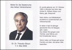 Eltern: Dr. Wilhelm Braun (Arzt) u. Maria geb. Braschoß; nach abitur u. Militärdienst studierte er Land- und Volkswirtschaft; fast 54 J. verheiratet mit Margret geb. Lippe; 4 K. |