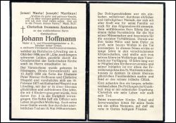 Eltern: Peter Werner Hoffmann u. Christine geb. Misgeld, † 18.5.1908; ∞ 10.2.1877 Katharina Misgeld aus Löveling; 4 K., davon 2 †, davon 1 Sohn im 1. Weltkrieg gefallen; 13 J. Mitgl. Kirchenvorstand; initiierte Erweiterungsbau des St. Martinuskrankenhauses; |