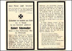 Gefallener 2. Weltkrieg; Eltern: Josef Schumacher u. Gertrud geb. Löhrer; 26.7.1944 Einberufung; am 17..9.1944 an die Front; Druck in Bornheim |
