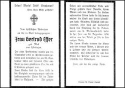 ∞ 26.9.1924 Heinrich Effer aus Gohr; 9 K., davon 2 früh † u. 1 Sohn 1944 im 2. Weltkrieg in Russland gefallen; Wohnort: Höningen; Druck in Anstel |