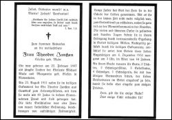 Eltern: Michael Muhr u. Margareta geb. Giesen; ∞ 23.8.1911 Theodor Janßen aus Sonsbeck; seit langen Jahren leidend; 2 überlebende Töchter |