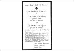 Opfer 2. Weltkrieg; † bei Fliegerangriff in der Nacht 27./28.5.1944; Vater Peter Müllejans im 2. Weltkrieg im Osten vermisst; mit ihr kam die Mutter ums Leben, der Bruder überlebte |
