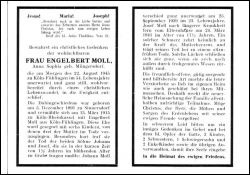 ∞ 13.3.1915 in Köln-Rheinkassel Engelbert Moll aus Köln-Fühlingen; 6 K., davon 3 †: Sohne Johann † 25.9.1939 mit 23 J., Sohn Josef † nach längerer Krankheit 24.3.1941 mit 17 J.; |