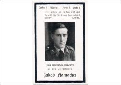 Gefallener 2. Weltkrieg; Eltern: Jakob Hamacher u. Josephine geb. Kierui; mit 4 Brüdern stand er von Beginn des Krieges an im Feld; Mutter verwitwet; |