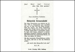 Fast 85 J.; ∞ 15.5.1920 Maria Reuter; 3 K., davon 2 †; gelernter Metzger, Land- und Gastwirtschaft in Niederembt; lange, schwere Krankheit (Herzasthma) |