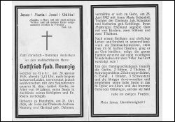 Eltern: Andreas Neunzig u. Gertrud geb. Dahmen; ∞ in Gohr 25.6.1902 Anna Maria Schenkel, Tochter v. Johann Schenkel u. Katharina geb. Schillings; 4 K.; Stellmachermeister |