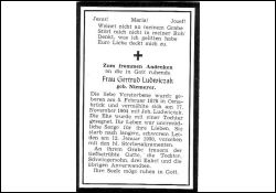 ∞ 17.11.1904 Johann Ludwiczak; 1 Tochter; langes, schweres Leiden |