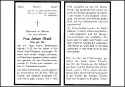 Langes, schweres Leiden; Eltern: Engelbert Nix u. Maria geb. Jansen; ∞ 7.5.1910 Johann Hirsch; 5 K., davon 1 †; |