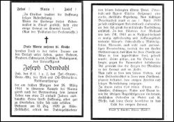 Gefallener 2. Weltkrieg; Eltern: Peter Odendahl u. Cäcilia geb. Holznagel; 1.4.1939 Reichsarbeitsdienst, anschließend militär. Ausbildung; zunächst im Westen eingesetzt, seit Okt. 1941 in Russland; zweimal verwundet; Heldenfriedhof in Jewe; Druck in Düren |