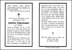 Langes Leiden; ∞ 7.2.1903 Peter Schumacher; 5 K., davon 2 jugendl. †; |