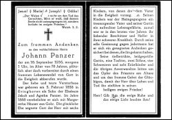 Eltern: Jakob u. Agatha Panzer; ∞ 1888 Margaretha Häuser aus Gohr; 6 K., davon 3 †; in den letzten 4 J. umsorgte er seine schwerkranke Gattin; |