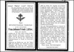 Eltern: Adam Paschen u. Gertrud geb. Adams; ∞ 10.12.1922 in Köln Johann Friedrich Lütter aus Gohr, Sohn v. Friedrich Lütter u. Sophie geb. Schenkel; 6 K., davon 1 †; sie umsorgte auch die erblindete Tante ihres Ehemannes |