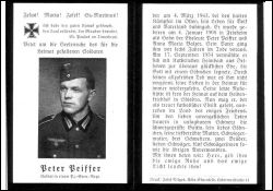Gefallener 2. Weltkrieg; Eltern: Peter Peiffer u. Anna Maria geb. Balzer; Vater vor 6 J. †; ∞ 17.9.1934 Katharina Heimbach aus Delhoven; 1 Sohn; Heldenfriedhof in Shisdra |