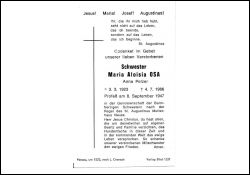 Maria Aloisia, OSA, geb. Pelzer | Vorname: |