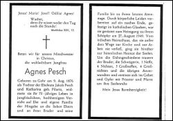 Eltern: Jakob Pesch u. Katharina geb. Pilartz; Jungfrau; widmete ihr Leben ihren Eltern und der Familie ihres Bruders |