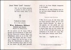 Mitgl. Mütterverein; ∞ 13.5.1908 Malermeister Johannes Blümer aus Schledehausen, am 6.8.1915 im 1. Weltkrieg in Russland als Sanitäter gefallen; ; 3 K. |